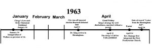 As the timeline shows, the date of the mayoral run-off election (Connor’s loss) and Dr. King’s arrival coincided on April 2, 1963, the clergy’s Call for Unity and Dr. King’s march were ten days later, both on April 12, 1963, and the date of record of the “Letter from the Birmingham Jail” was four days after that, on April 16, 1963. It was fast-paced, and more was to happen on Easter Sunday, April 14.
